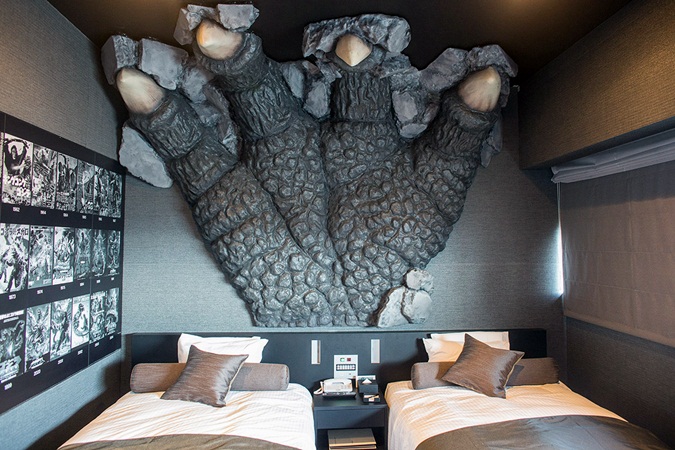 Hotel yang bernama Gracery ini berlokasi di Shinjuku, gedung Toho Cinema, Tokyo. Di hotel ini lo akan ditawarkan kesempatan untuk tidur di bawah tatapan miniatur kadal raksasa yang ada di sudut ruangan. Hotel berlantai 30 itu memiliki fasilitas dua kamar yang bertemakan godzilla. Dan siap-siap aja karena lo akan dibuat kaget dan tegang saat bangun tidur. Di salah satu ruangan terdapat jendela panjang dengan replika mata godzilla yang akan melirik lo seakan-akan tahu apa aktivitas lo. Di kamar lain sebuah kamar juga dilengkapi fitur ekstra dengan tangan godzilla raksasa, lengkap beserta cakar seperti silet di atas tempat tidur.