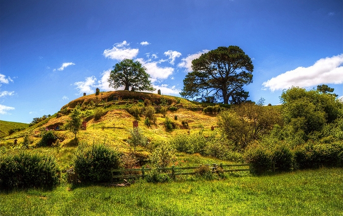 Hobbiton, pemukiman masyarakat Hobbit di bukit ini sekarang dijadikan taman tematik untuk menarik turis yang datang. Tertarik bermain ke rumah Bilbo?